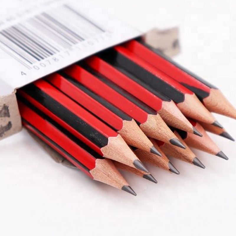 This pencil is designed with a sharp point at the top and a smooth, rounded point at the bottom. It is made out of sturdy, hard wood and has a dark, lacquer finish.